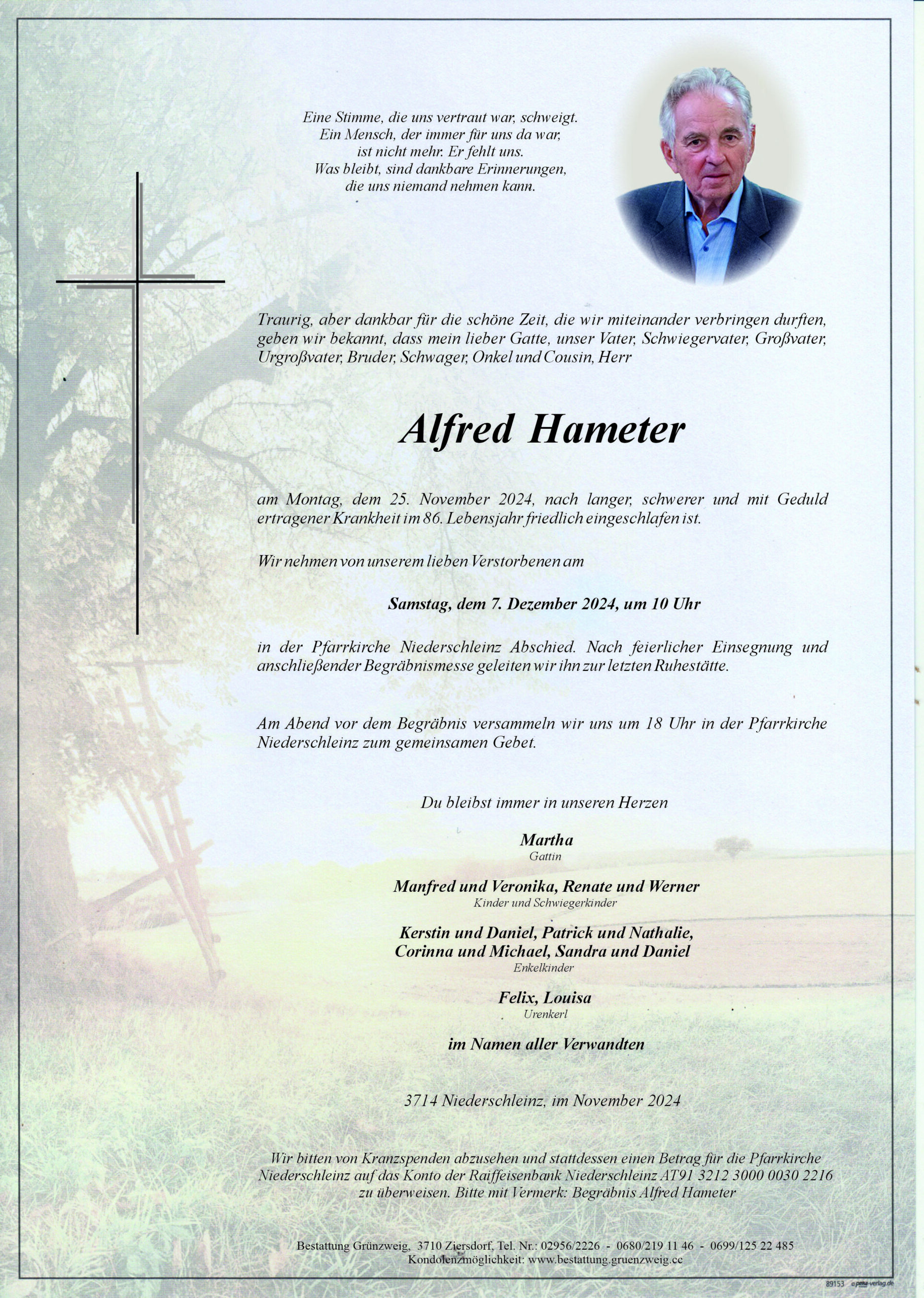 Liebe Familie Hameter, wir bitten Euch den Ausdruck unserer innigsten Anteilnahme entgegen zu nehmen, wir werden Alfred stets ehrend und dankbar gedenken. Helga, Gerhard und Helga Schauhuber