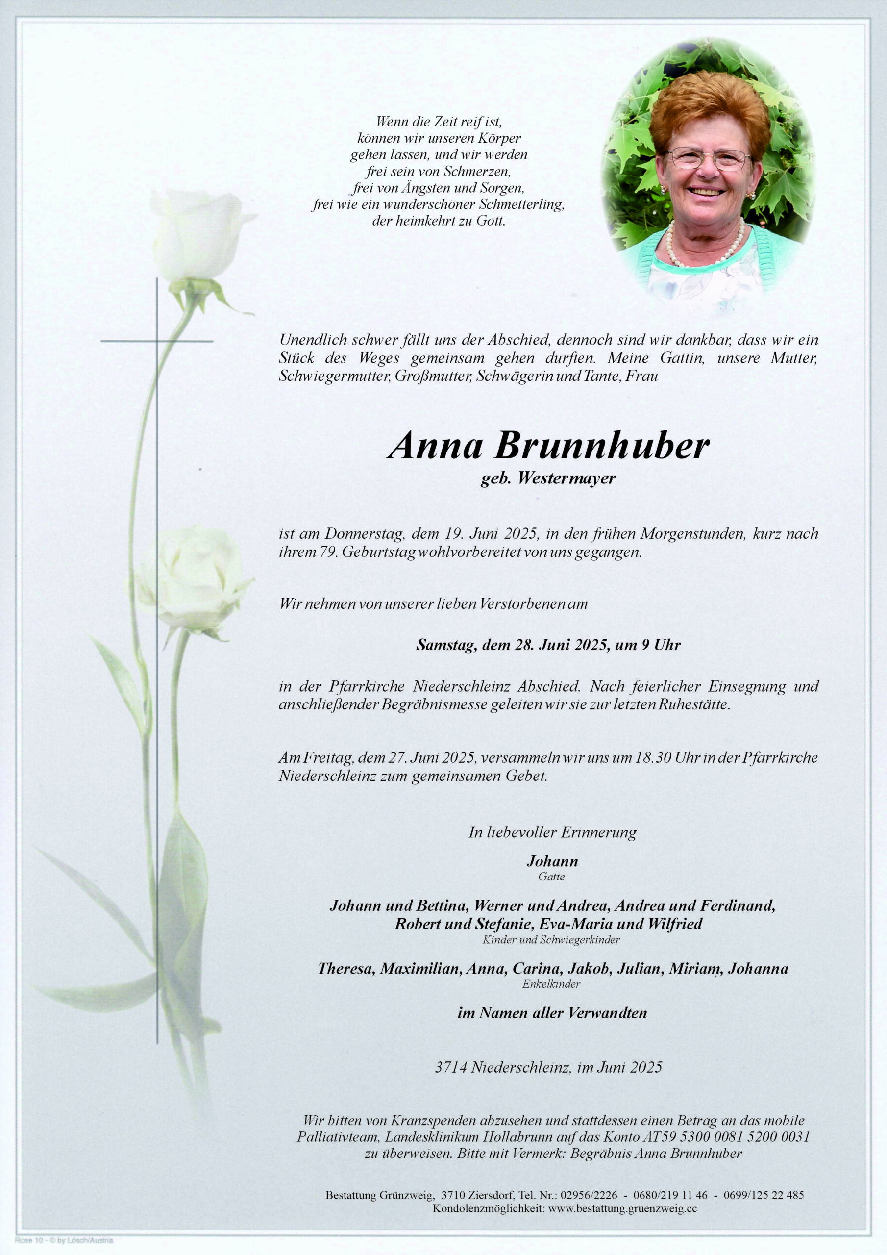 Aufrichtige und innige Anteilnahme zum Ableben von Frau Brunnhuber