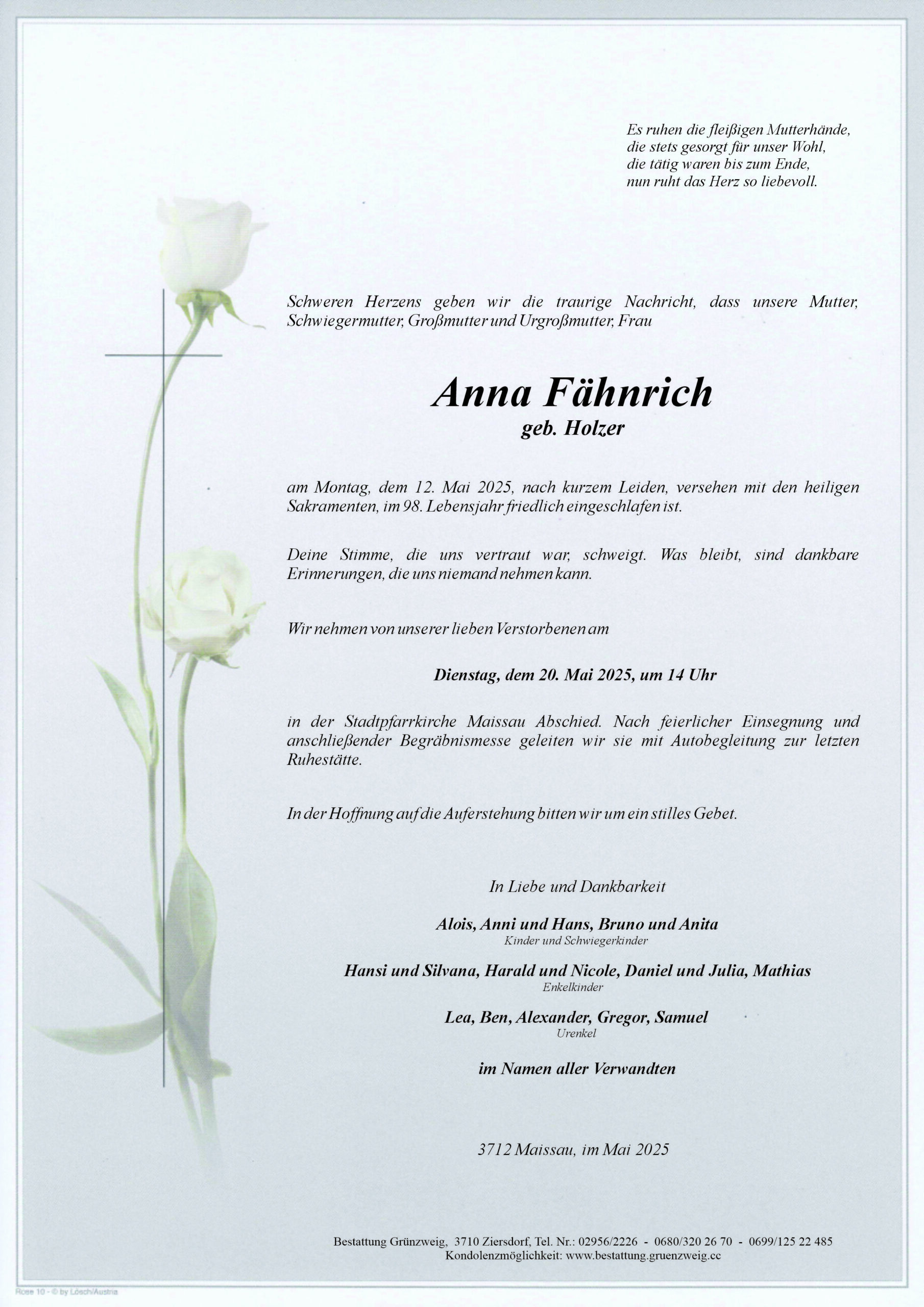Liebe Familie Fähnrich, unsere allerherzlichste Anteilnahme zum Heimgang eurer lieben Mutter und viel Kraft für die kommenden Tage.