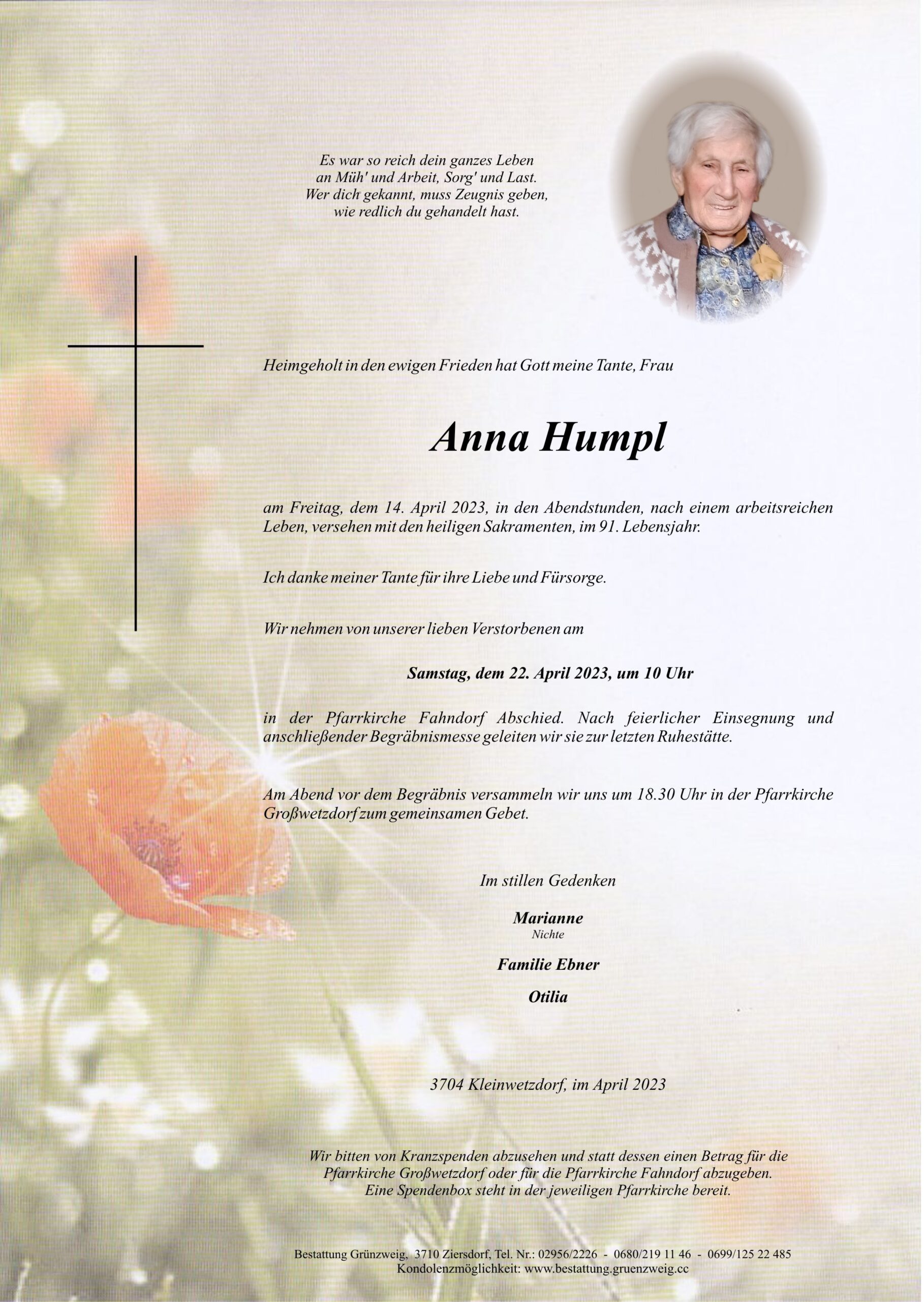 Aufrichtige Anteilnahme an dem schweren Verlust entbieten Ihnen Ernst und Doris Schwarz samt Martina und Sabine und Leopold Wichtl aus Großwetzdorf