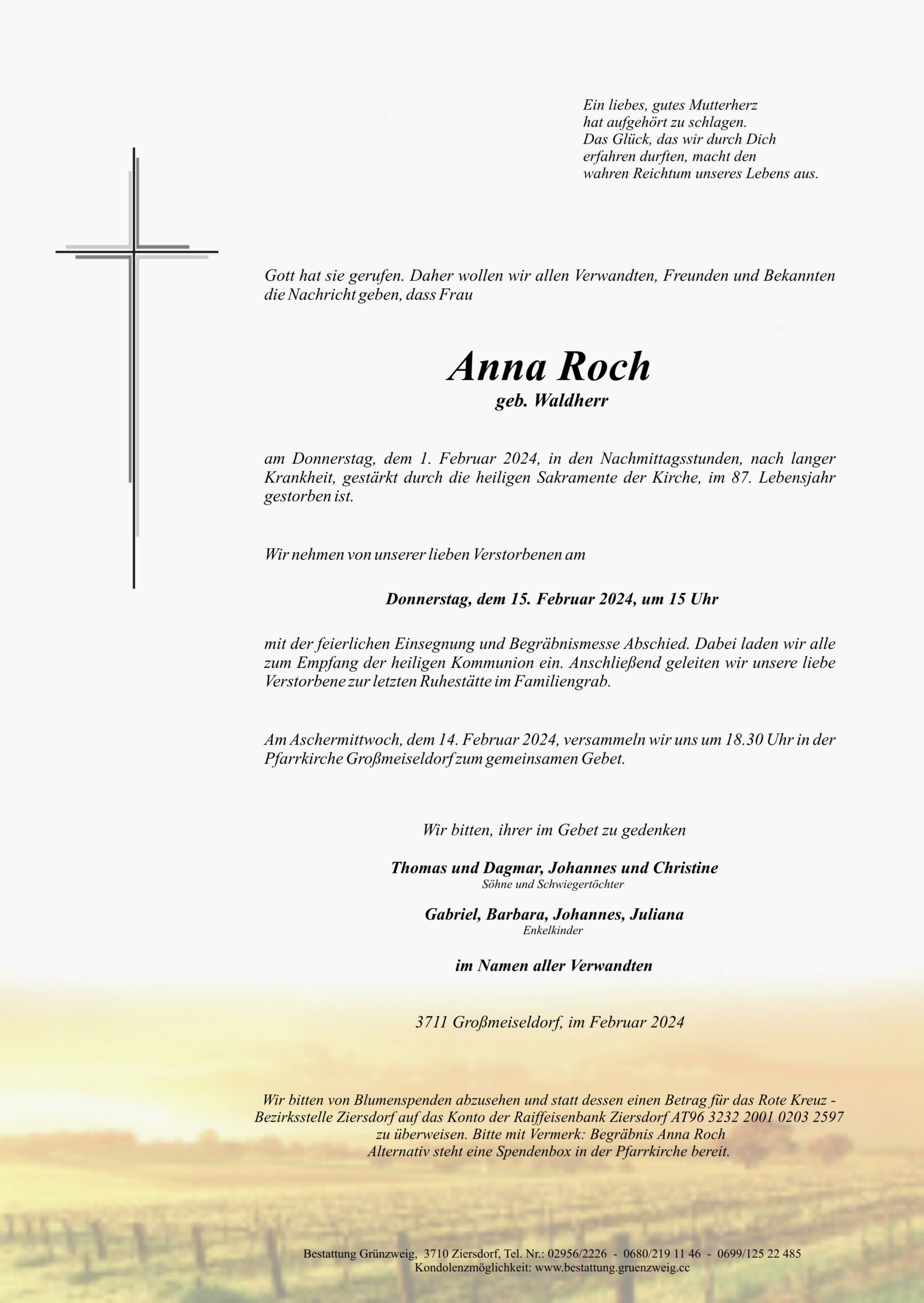 Unser aufrichtiges Beileid entbietet Fam. Maria Grill
