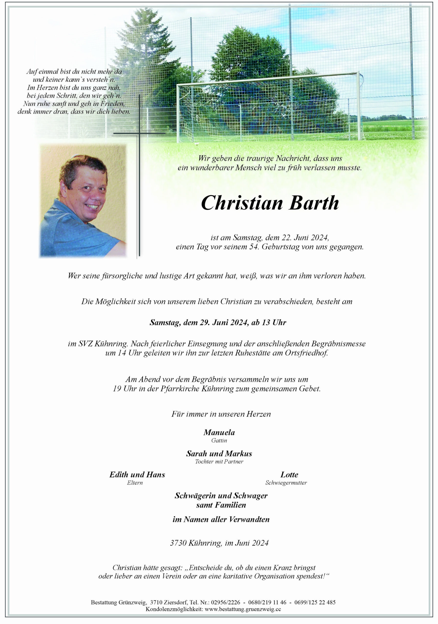 Meine Gedanken sind bei Ihnen und Ihrer Familie. Viel Kraft in dieser schwierigen Zeit. Ich durfte Christian als jahrelangen liebenswürdigen und lustigen Kollegen kennenlernen. Brigitte Tschank