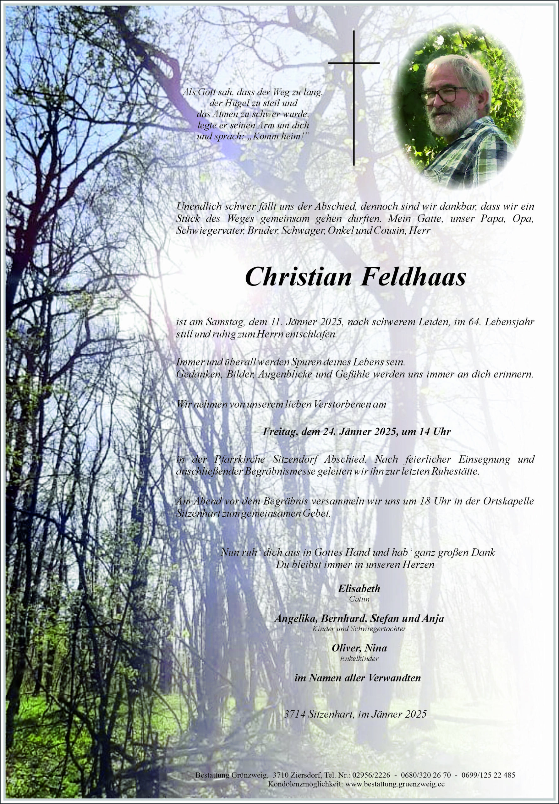 Liebe Elisabeth und gesamte Familie mein herzliches Beileid und viel Kraft in den schweren Stunden der Trauer und des Abschieds Christian war ein seelenguter Mensch ….