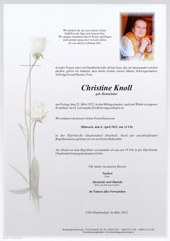 Knoll Norbert, Sohn Alexander und Schwiegertochter Daniela danken für die erwiesene Anteilnahme und die berührenden Worte!