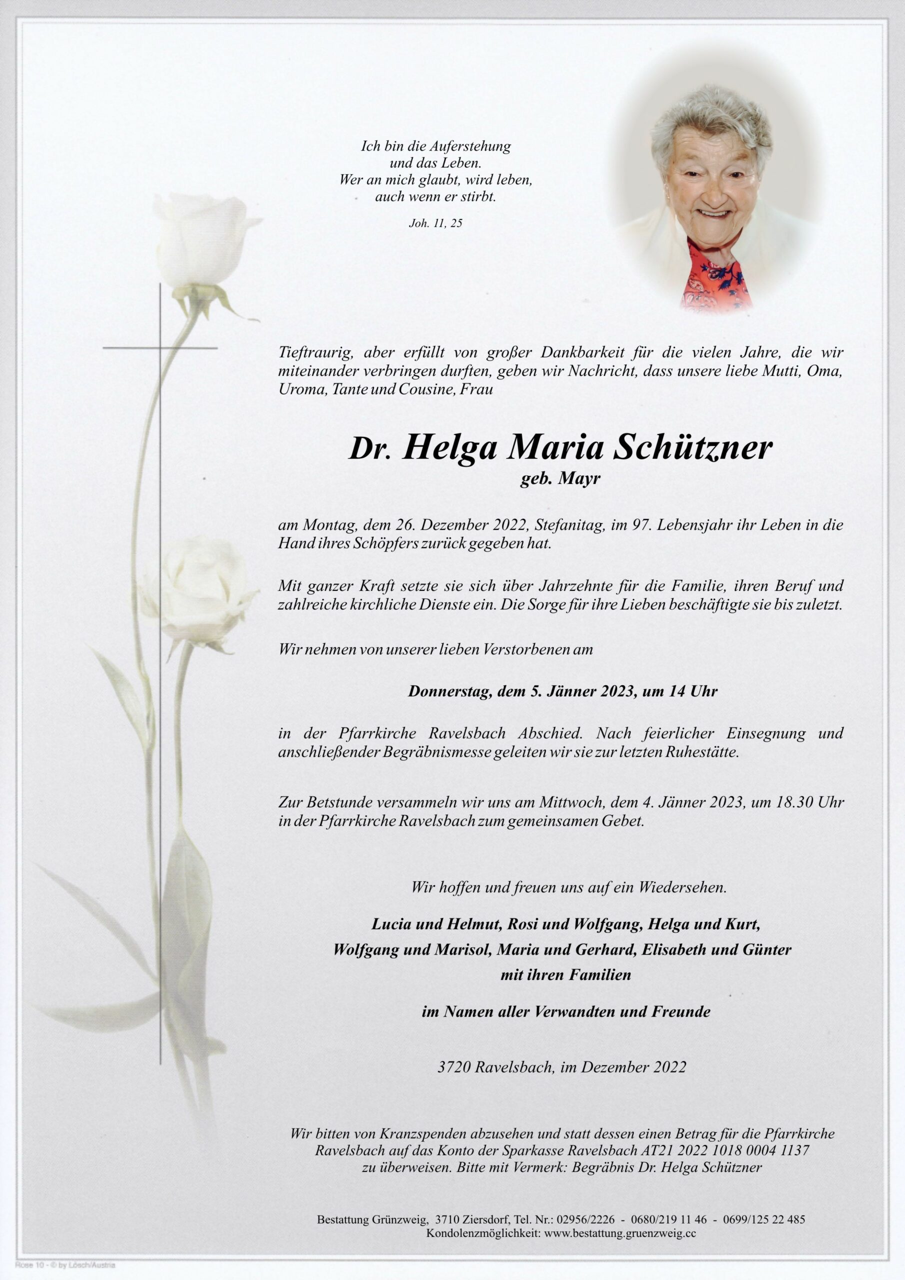 Mein ganzes Leben habe ich Eure Mutti in guter Erinnerung- zuerst als Zahnärztin,danach durch zahlreiche Gespräche im Gemeindegebiet Ravelsbach,schließlich als Sitznachbarin in der Pfarrkirche in den letzten Jahren.Und immer wurde gegenseitig gefragt, wenn eine von uns beiden nicht da war. Eure Mutti war trotz ihrer langjährigen Ausbildung und Weiterbildung , trotz ihres Könnens -eine sehr umgängliche,sehr menschliche Frau,sie war fürsorglich und mit all ihren guten Eigenschaften ein Vorbild für uns alle. Der Platz in der Kirchenbank bleibt leer,im Herzen wird mir ihr fröhliches Wesen immer in Erinnerung bleiben.Möge sie in Frieden ruhen.Unser inngstes Beileid,Maria und Lukas Streller