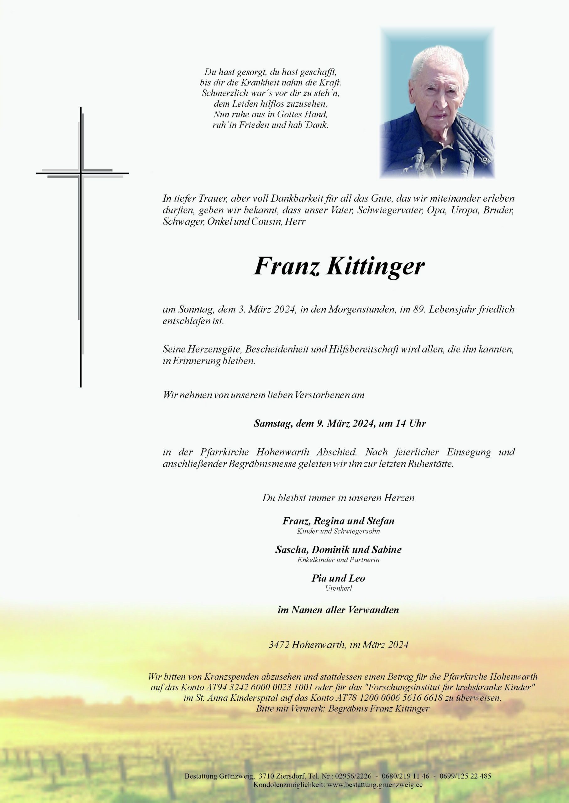 Aufrichtige Anteilnahme entbittet Familie Kittinger
