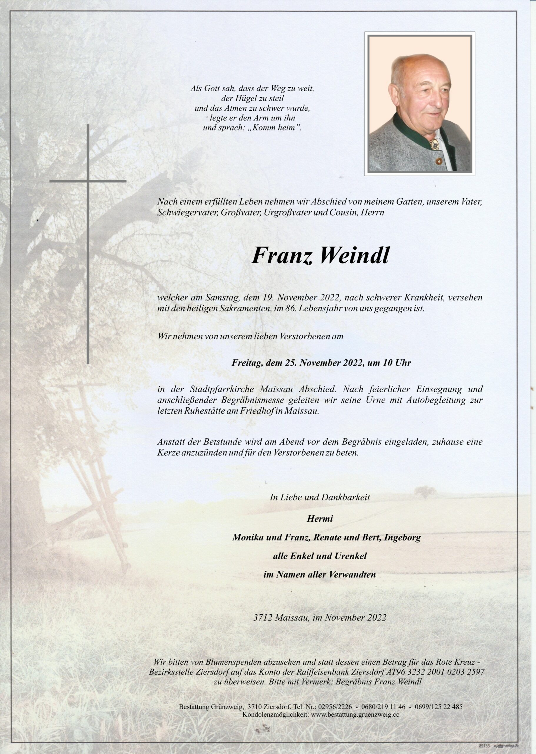Unsere aufrichtige Anteilnahme am Tod von Herrn Weindl entbietet Fam. Keusch
