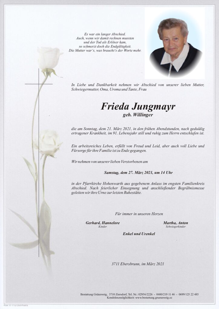 Ich werde unsere fröhlichen Begegnungen in Pfaffstetten bei meinen Eltern mit Frieda – Tante immer in lieber Erinnerung behalten!