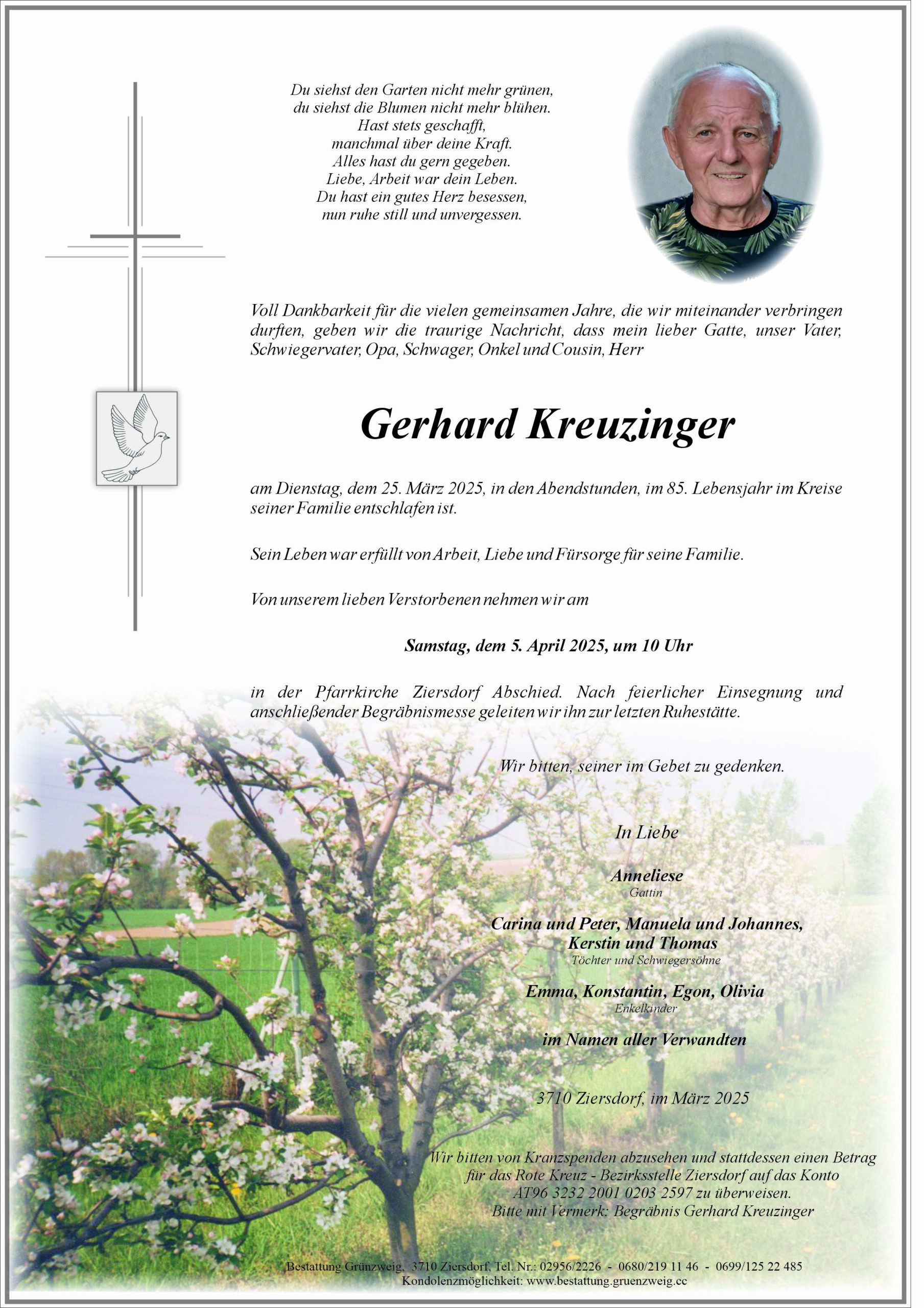 Das Leben ist begrenzt – doch Liebe und Erinnerungen bleiben unendlich. Ruhe in Frieden lieber Onkel Gerhard. Aufrichtige Anteilnahme entbieten Gerhard und Monika