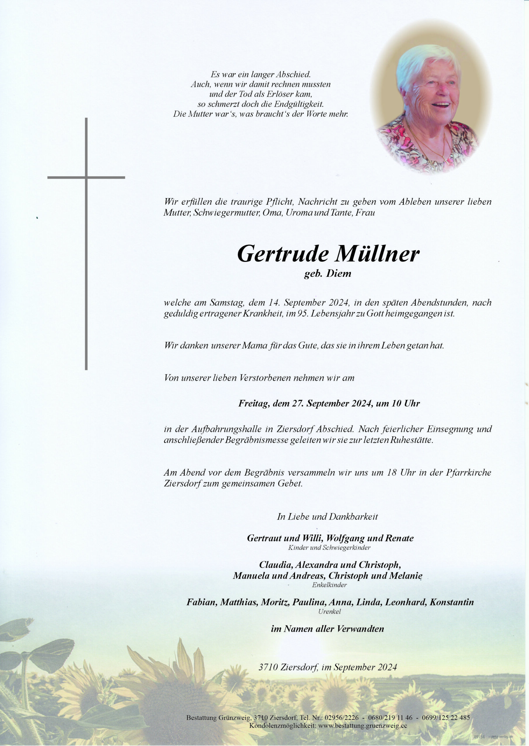 Aufrichtige Anteilnahme entbieten, Martha, Margit und Leopold Schörg