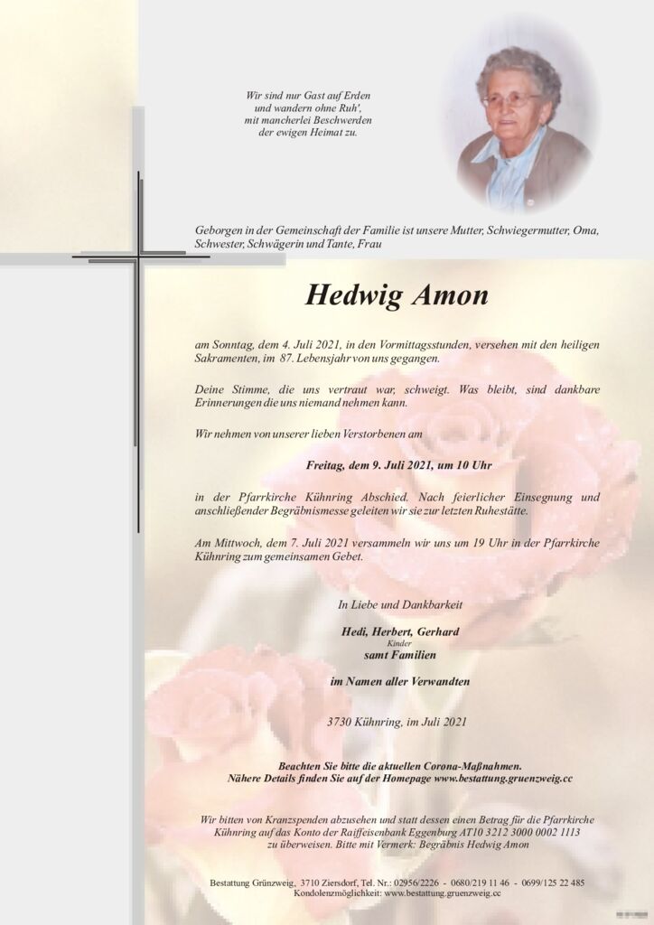 Aufrichtiges Beileid entbieten euch allen liebe Familien Amon und Junek – Cousine Eva und Hermann