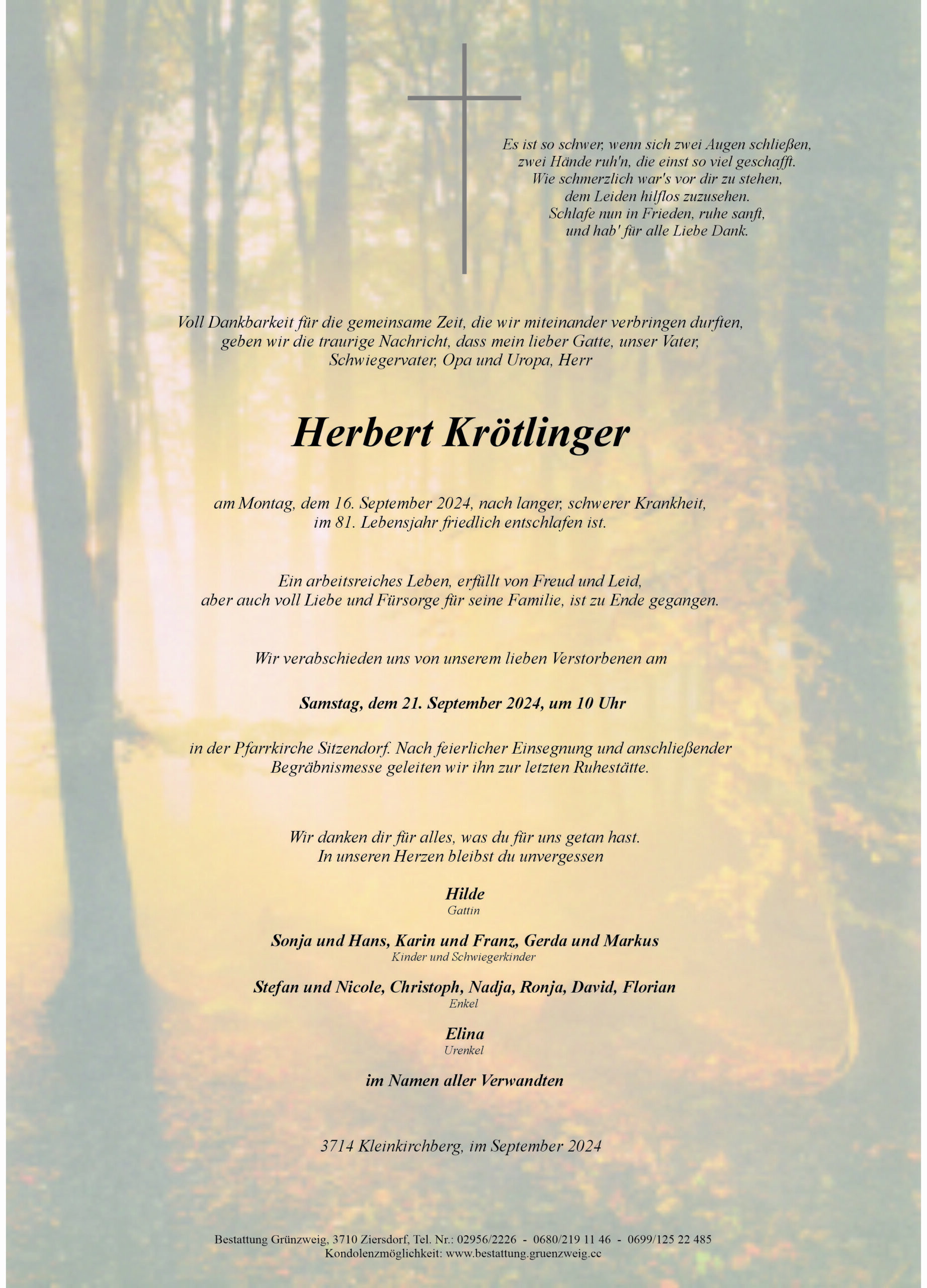 Liebe Familie Krötlinger, herzliches Beileid und viel Kraft in dieser schweren Zeit wünscht Ihnen Familie Schuh Frauendorf