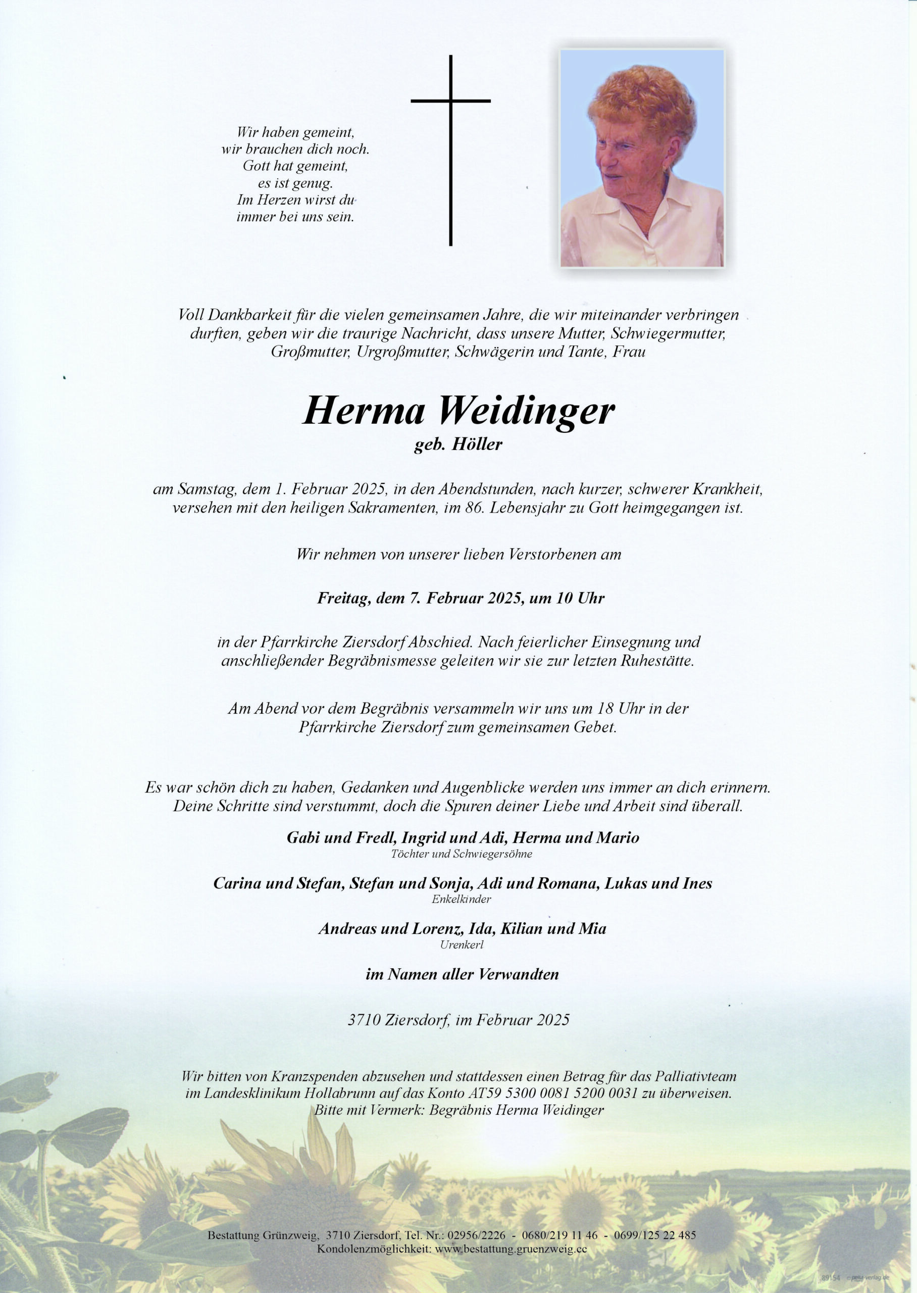 Aufrichtige Anteilnahme zum Ableben von Frau Weidinger! Familie Zeller, Fahndorf