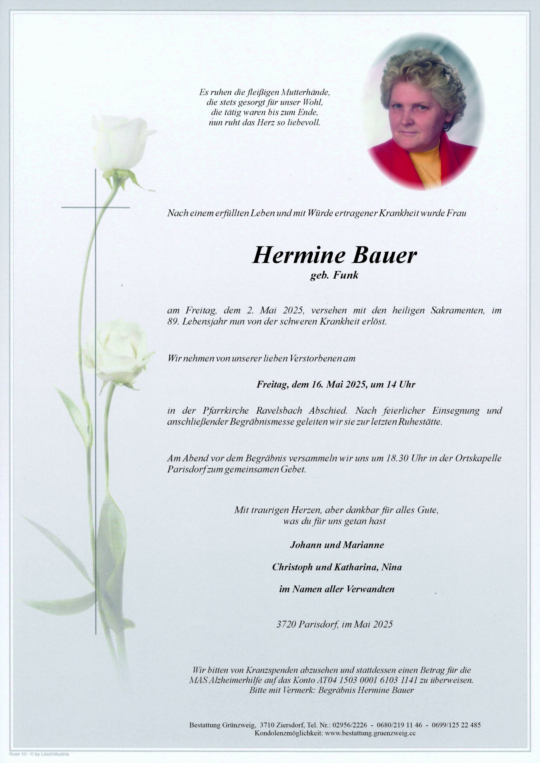 Unsere aufrichtige Anteilnahme entbieten Rudi und Anni Wimmer Oberravelsbach