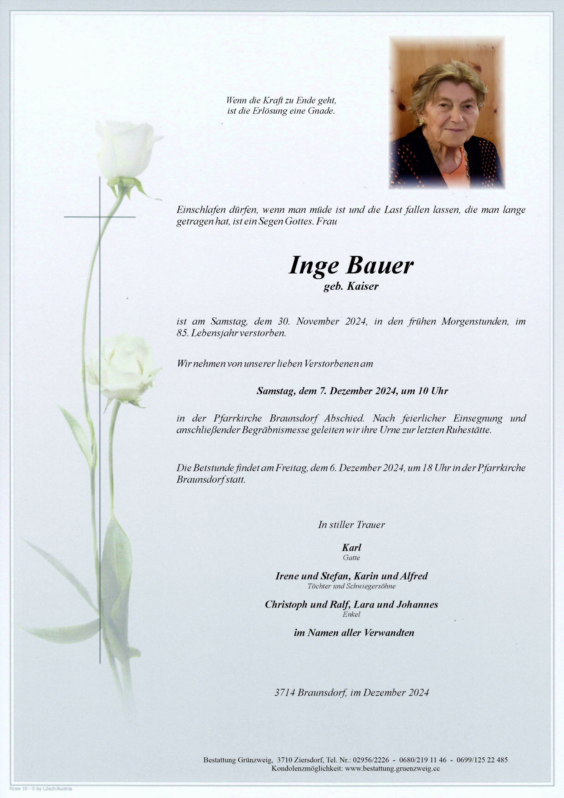 Was man tief in seinem Herzen besitzt, kann man durch den Tod nicht verlieren. Unser aufrichtiges Beileid entbieten Rosa und Karl Bauer sowie Liane und Herbert