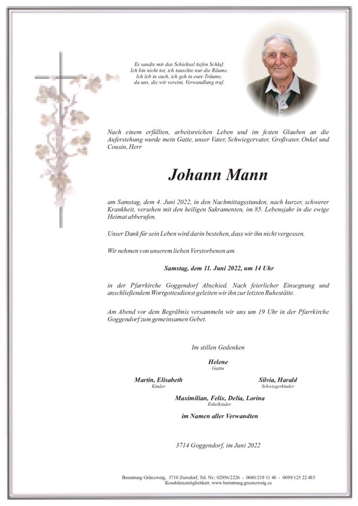wir sind betroffen über den Tod von Johann Mann. Wir wünschen euch und Ihnen in dieser schweren Zeit jetzt viel Kraft.