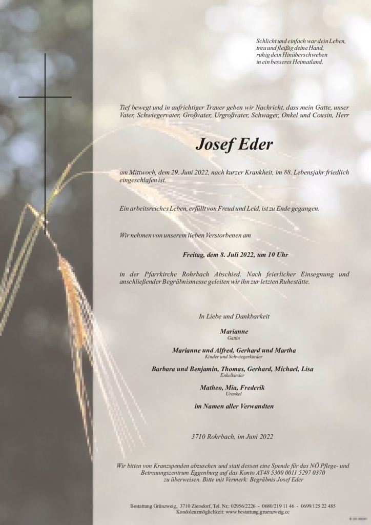 Marianne Eder und Familien bedanken sich herzlich für die erwiesene Anteilnahme.