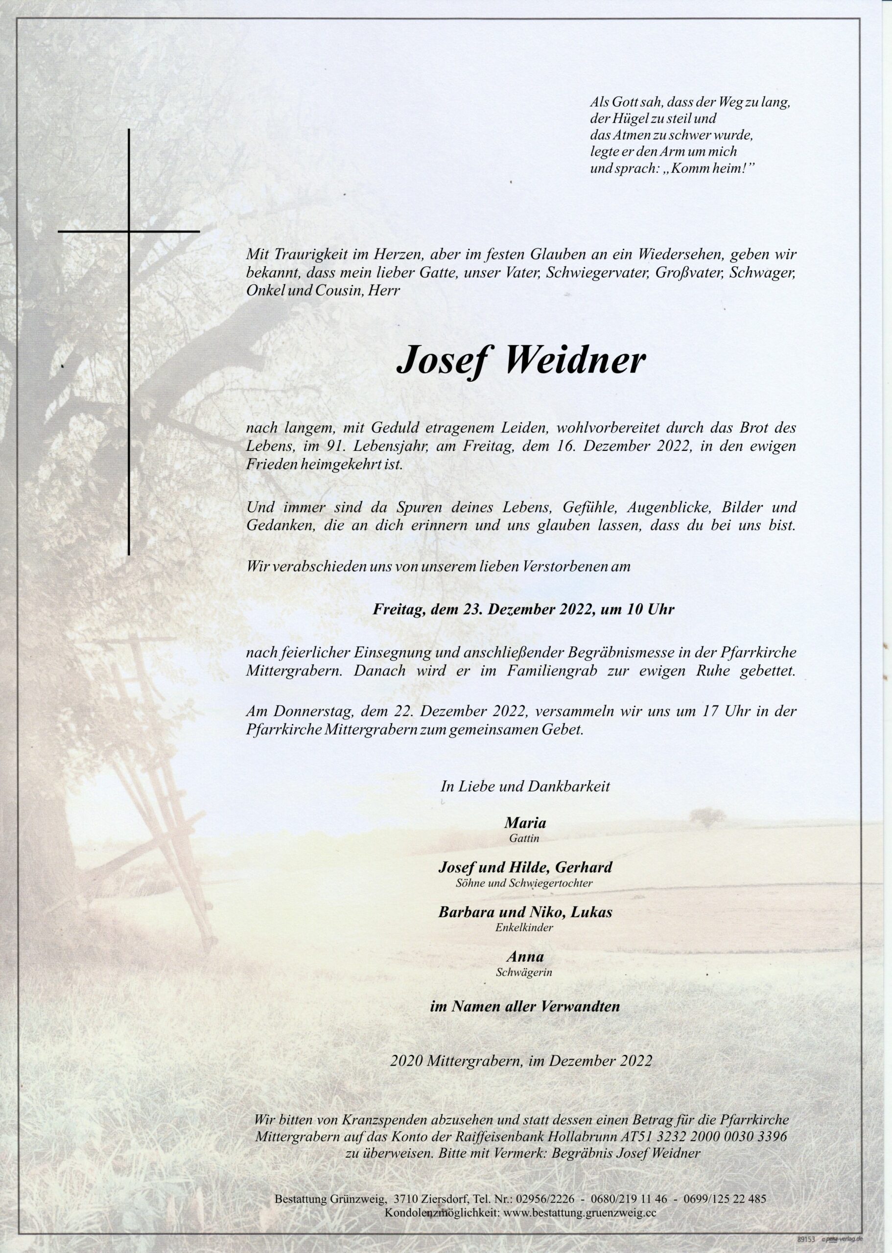 Aufrichtige Anteilnahme der ganzen Familie entbietet Josef Raidl und Inge Lutz