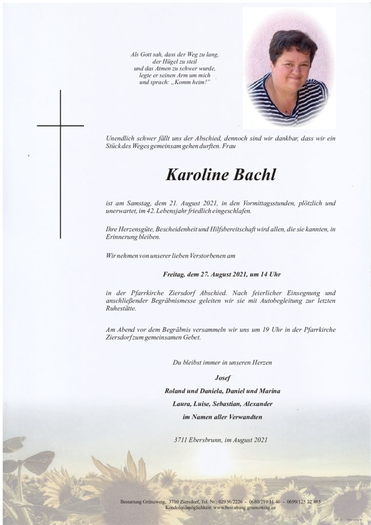 Unser Aufrichtiges Beileid zum schmerzlichen Verlust von Karoline. Für die nächste Zeit wünschen wir Dir viel Kraft und hoffen, dass Deine Trauer eines Tages leichter wird.