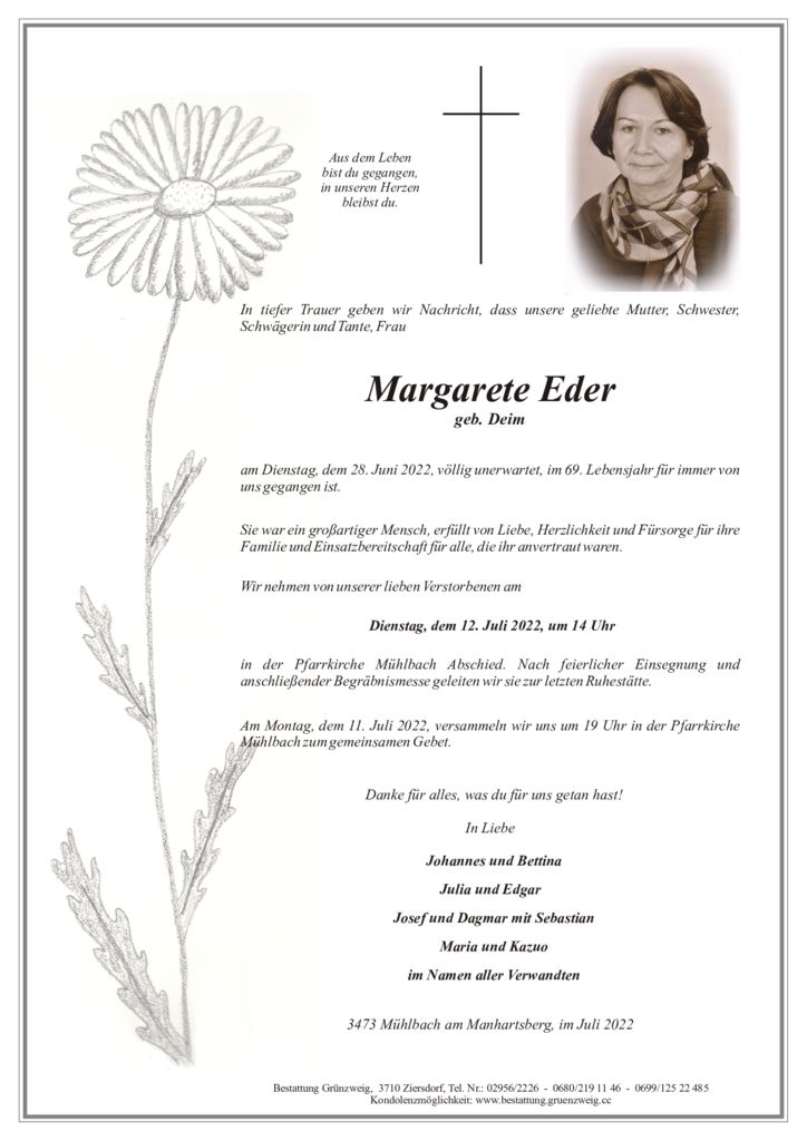 Zu Ihrem großen Verlust möchte ich hiermit mein aufrichtiges Beileid bekunden. Margarete zählte zu meinen Schulkolleginnen, die mir auch Freundinnen waren.