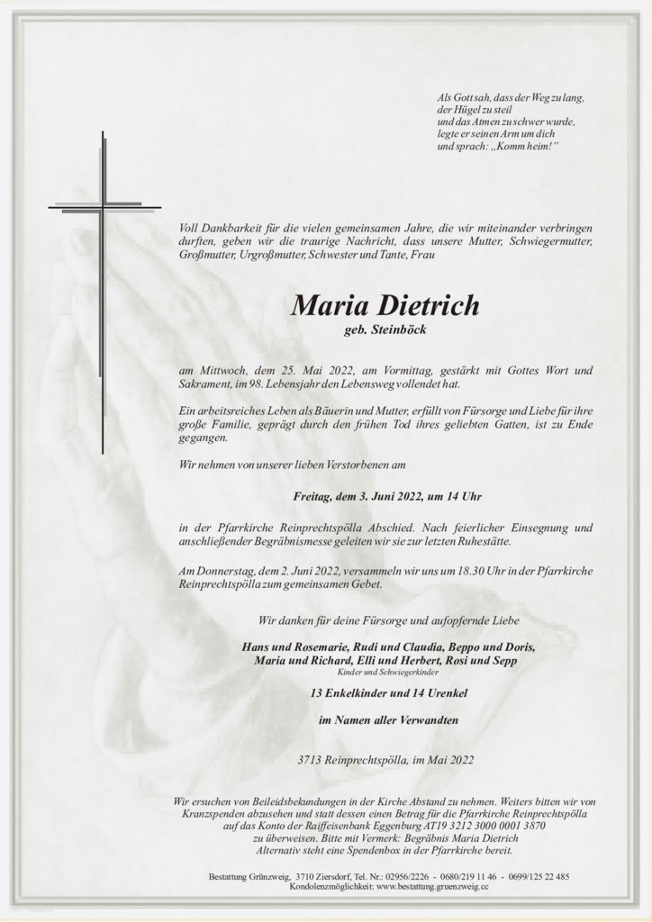 Möge sie im Jenseits unsere Fürsprecherin sein! Maria Magdalena Nödl im Namen meiner Familie