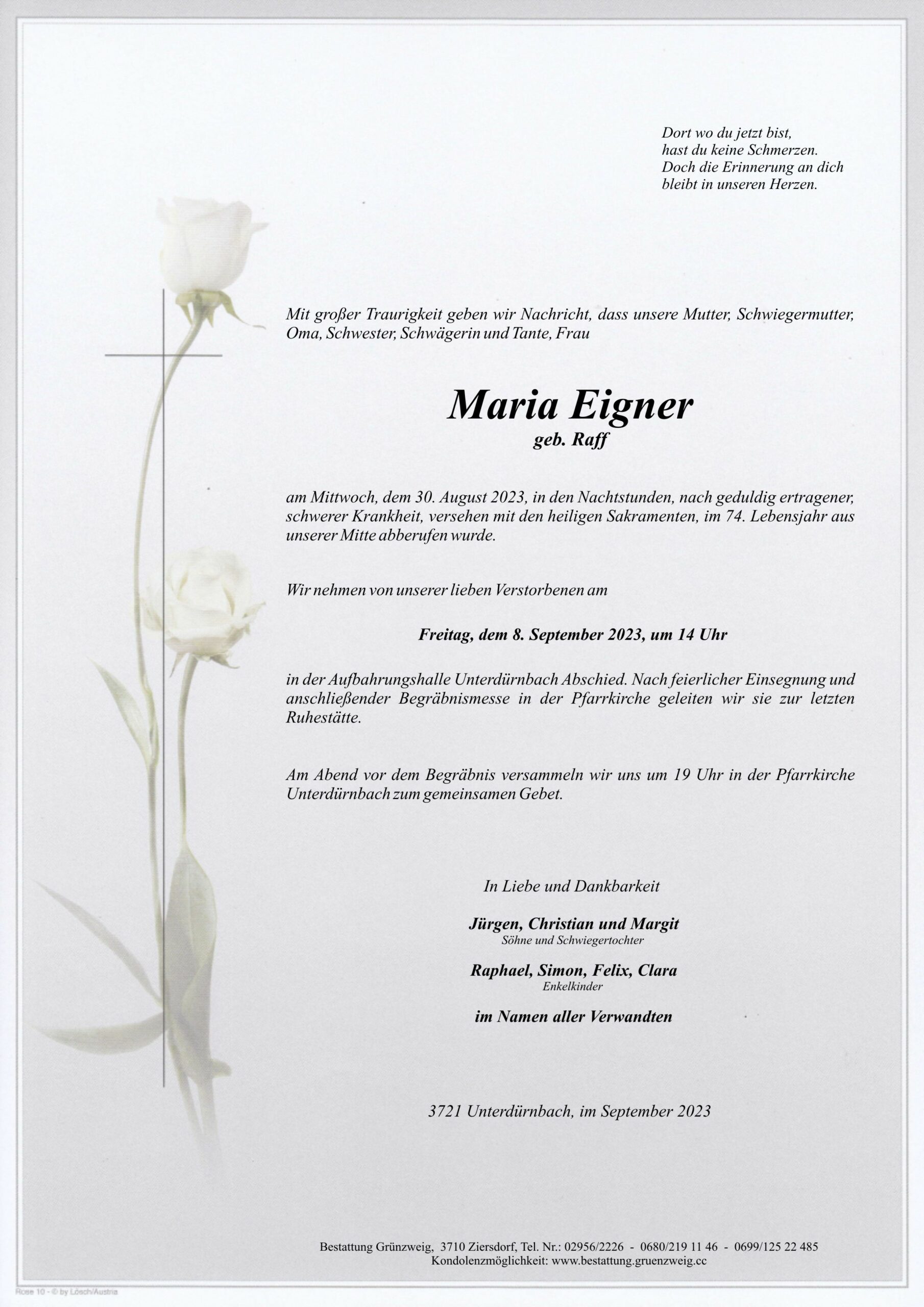 Innigste Anteilnahme lieber Christian u.Jürgen samt Familien entbietet Otto Th. u.Helga Ruhe sanft Maria
