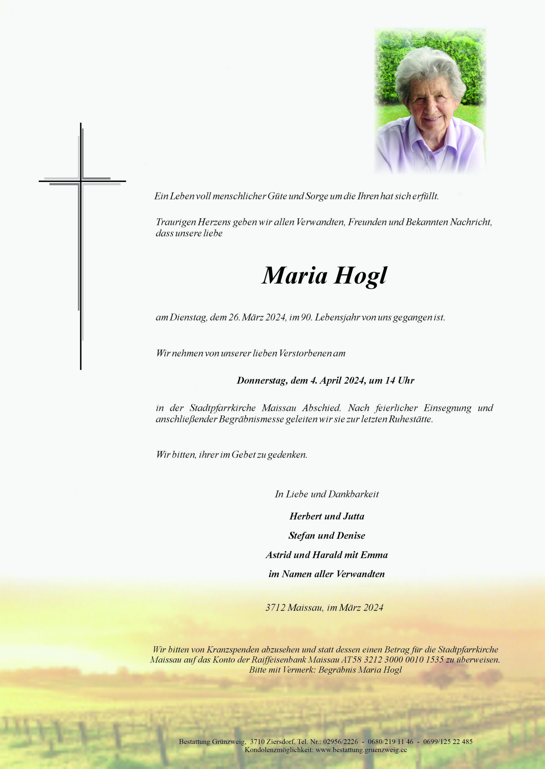 aufrichtiges Beileid zum schmerzlichen Verlust von Maria Hogl.
