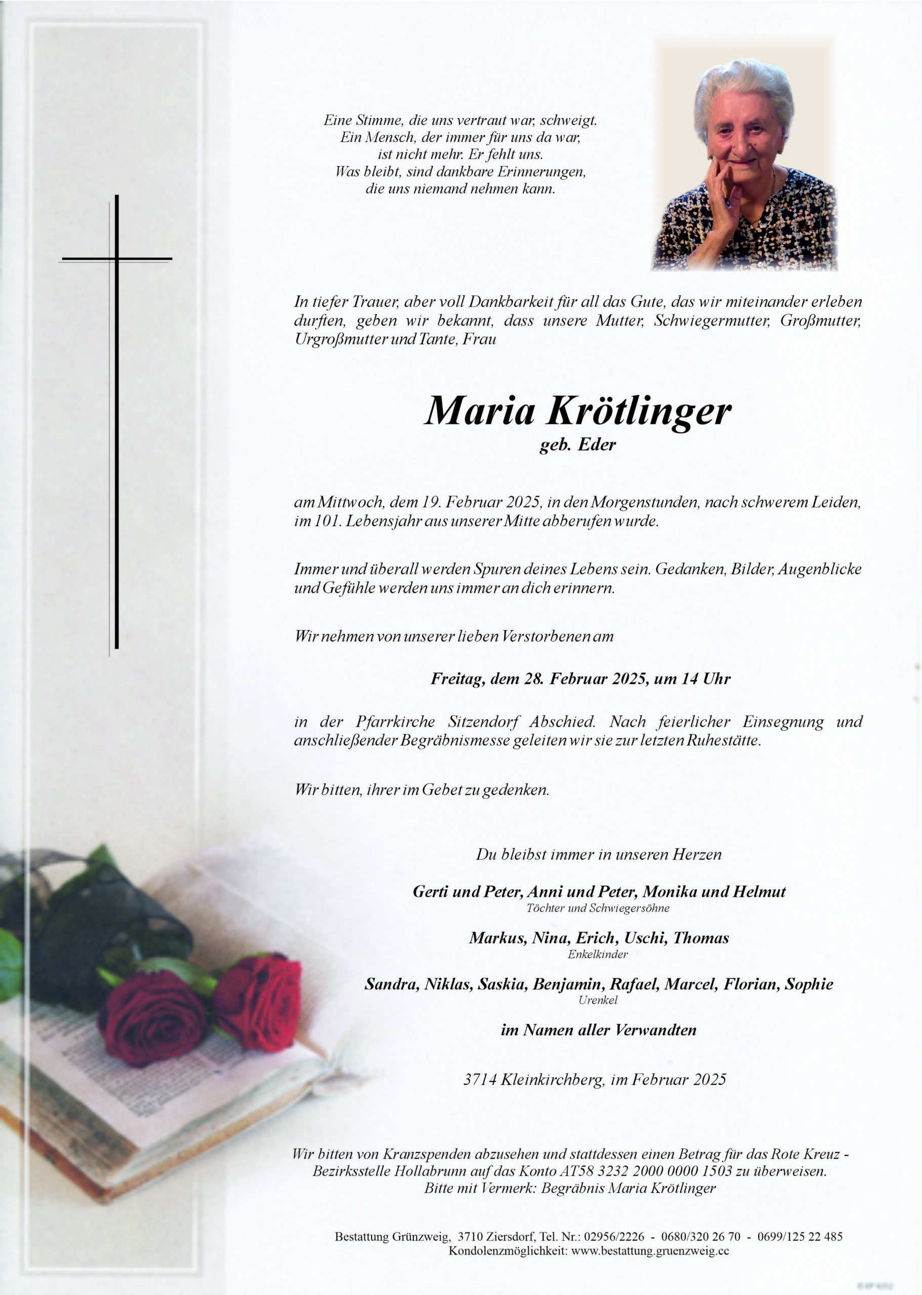 Ein hohes Alter und doch braucht es Zeit zu begreifen, denn ein lieber Mensch, eine Mutter die immer da war, ist gegangen. Wir wünschen der Trauerfamilie und allen Verwandten unser herzliches Beileid und aufrichtige Anteilnahme an diesem Verlust. Familie Christine, Lukas, Matthias Wöber, Sitzendorf