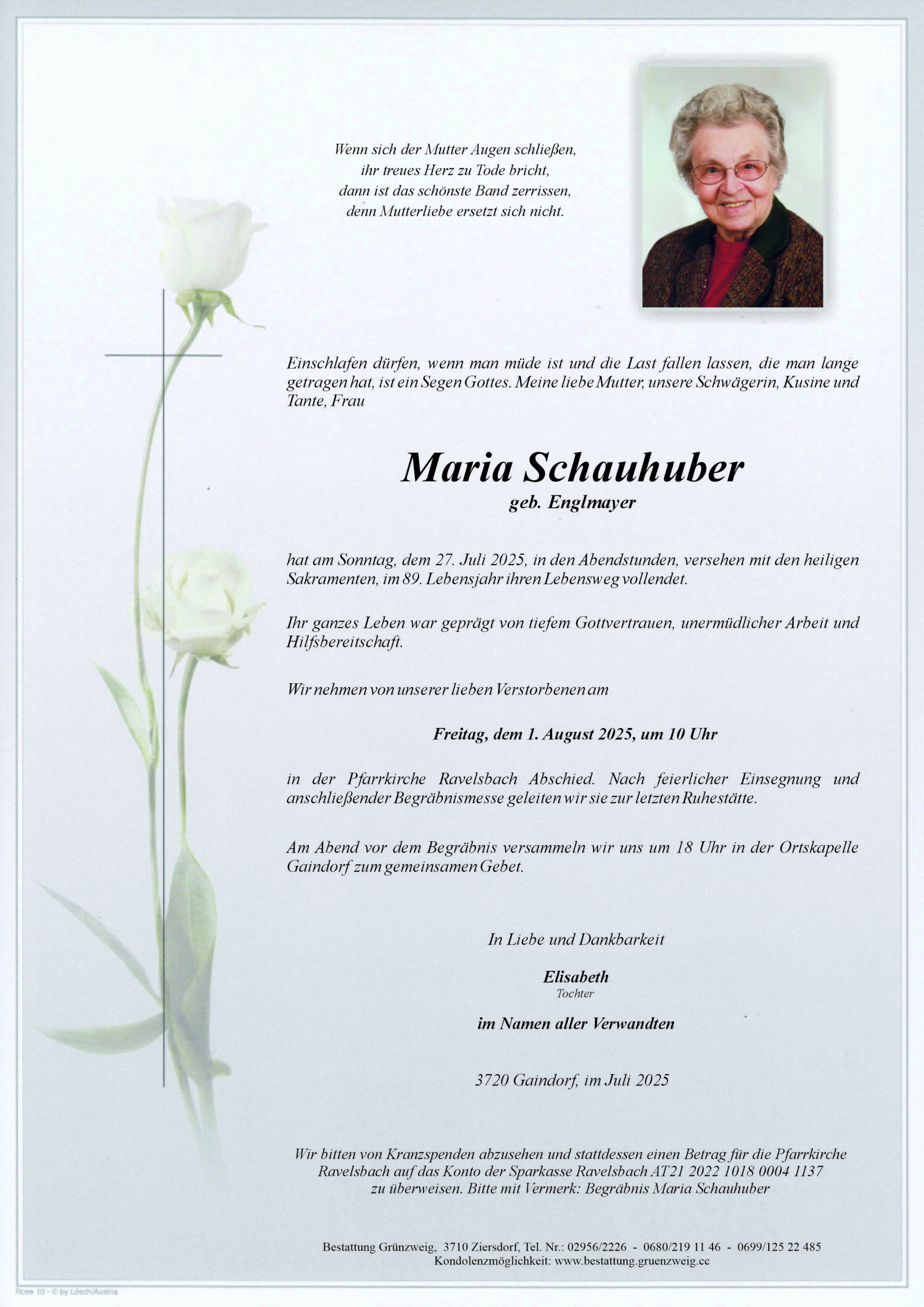 Sehr geehrte Frau Elisabeth Schauhuber,