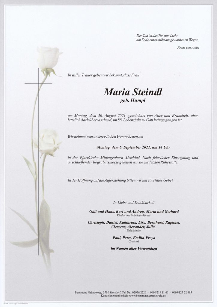 Unser aufrichtiges Beileid der ganzen Familie von Maria Steindl entbietet Familie Leopold Kisser