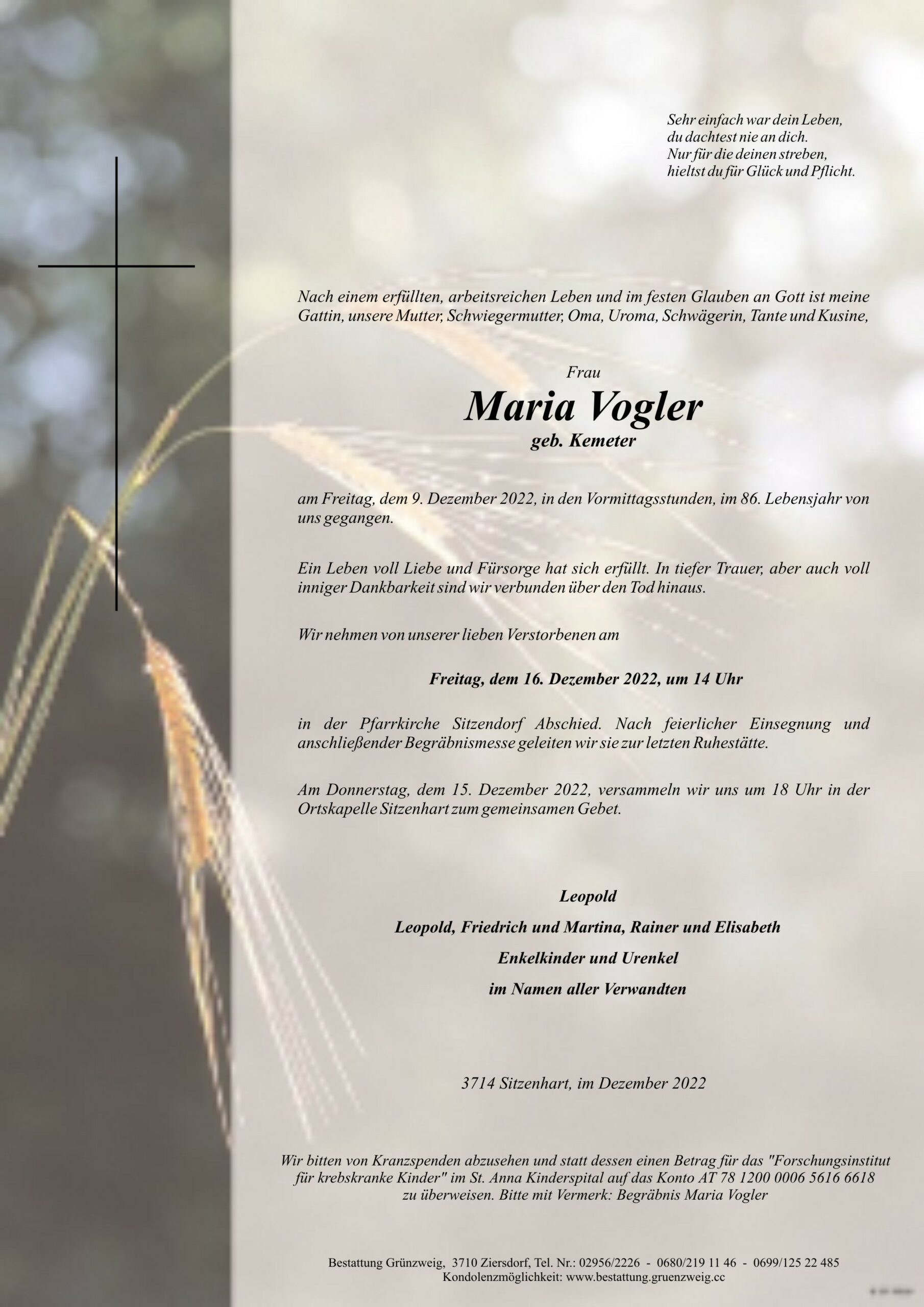 Aufrichtige Anteilnahme zu dem schweren Verlust entbitet Familie Josef und Maria Marhold