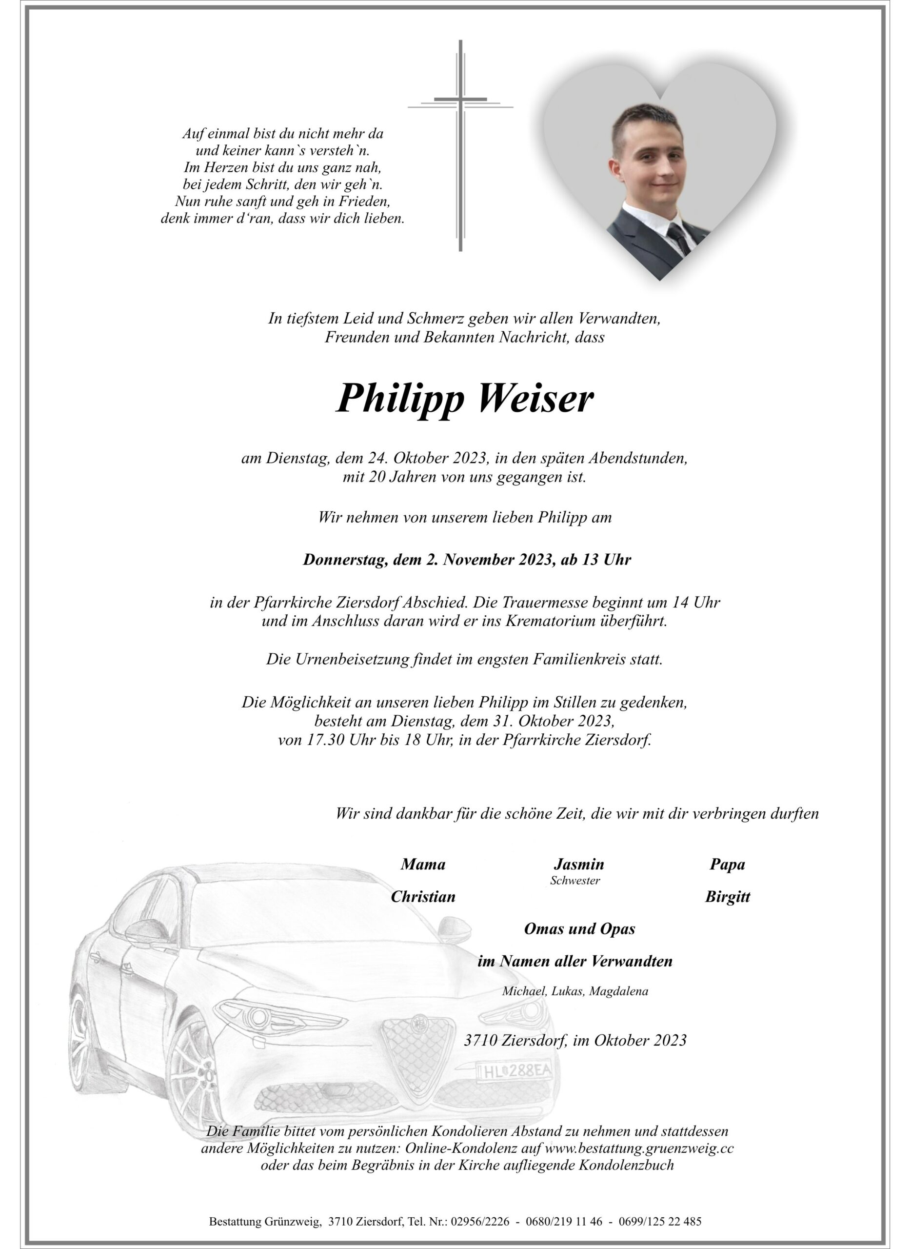 Liebe Eltern und liebe Schwester von Philipp,