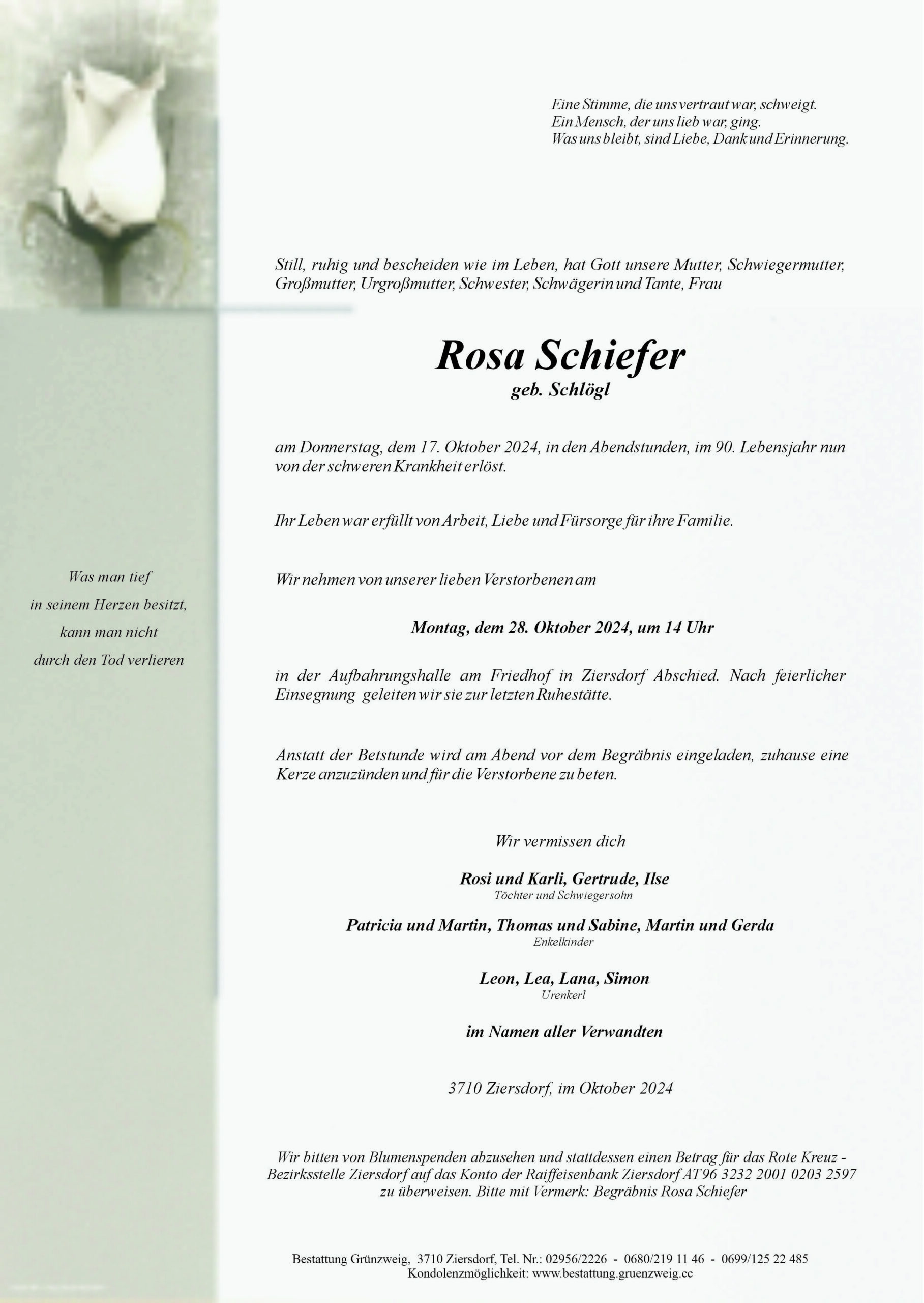 Im Namen der gesamten Familie bedanke ich mich für die Anteilnahme für unsere Oma. Ilse Schiefer