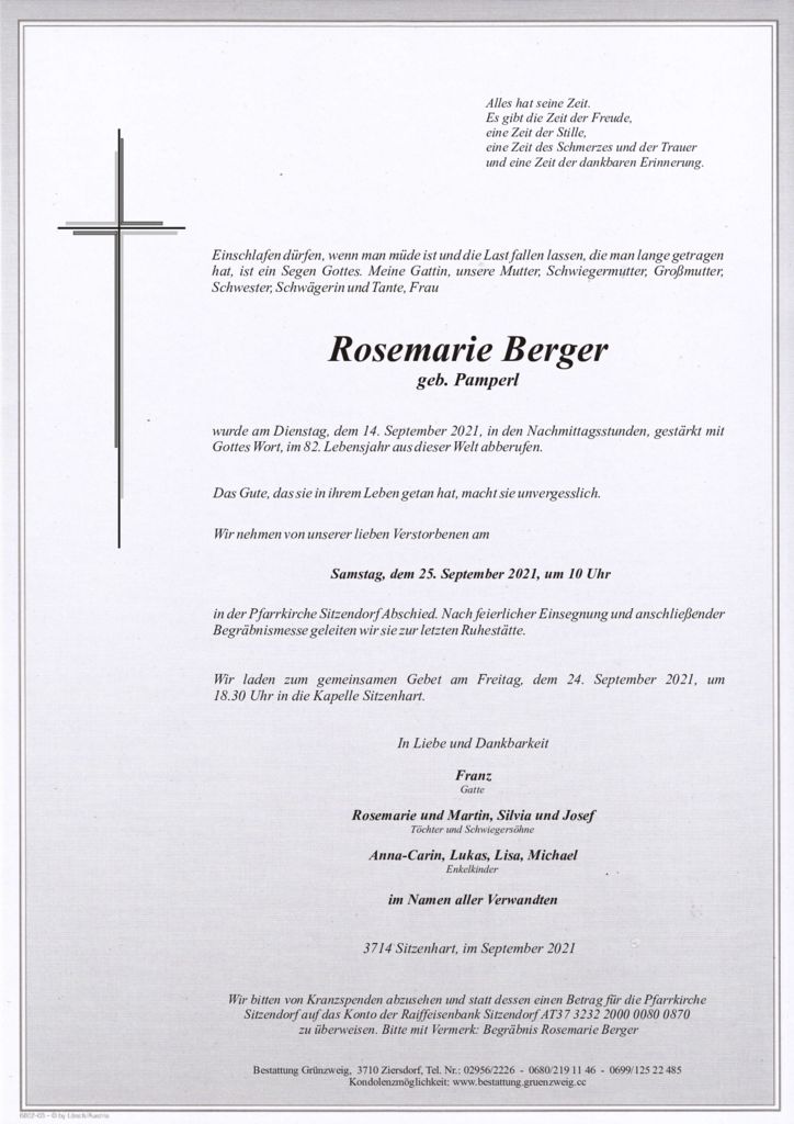 Aufrichtige Anteilnahme zum Ableben von Rosemarie. Wir werden sie immer in Erinnerung behalten. Emmi und Walter